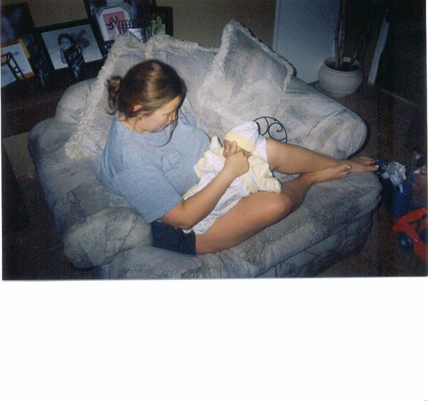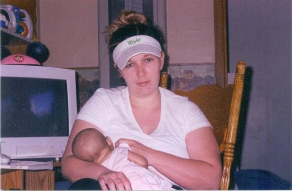 Michelle in her home January 2004 breast feeding her youngest.